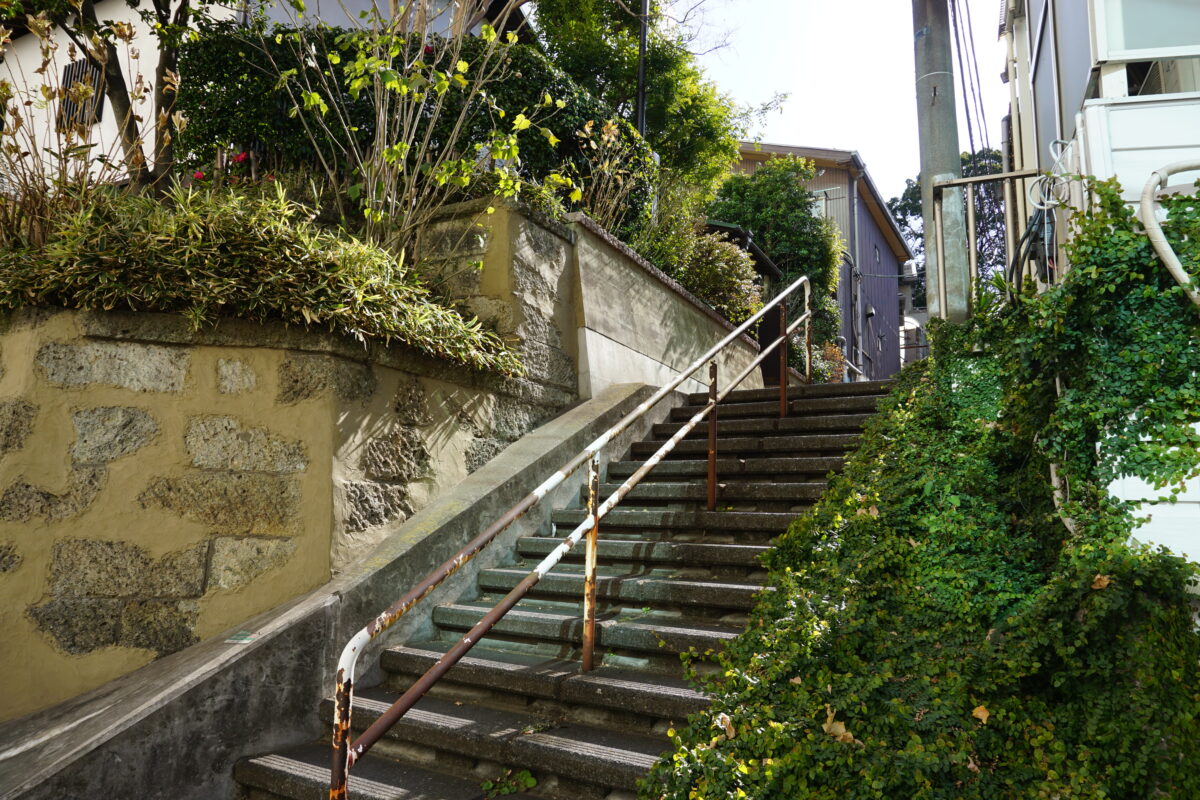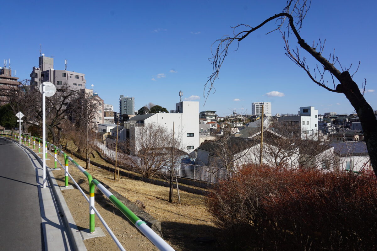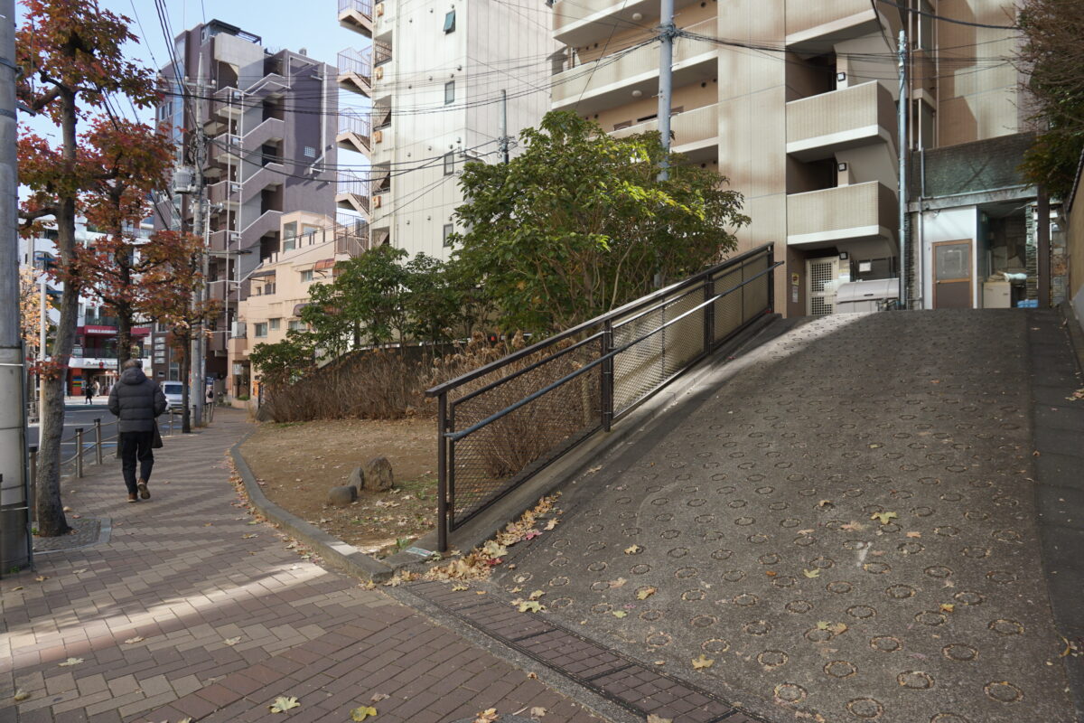 ブラタモリは西口側へ。東口側とはうって変わって住宅地です。ナゾの微高地があります。