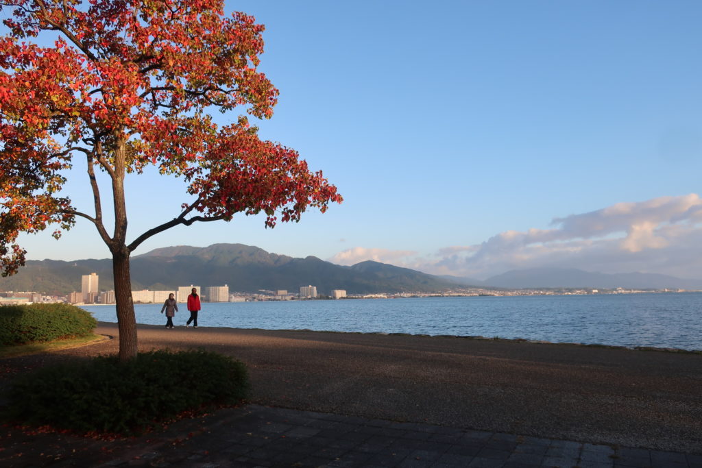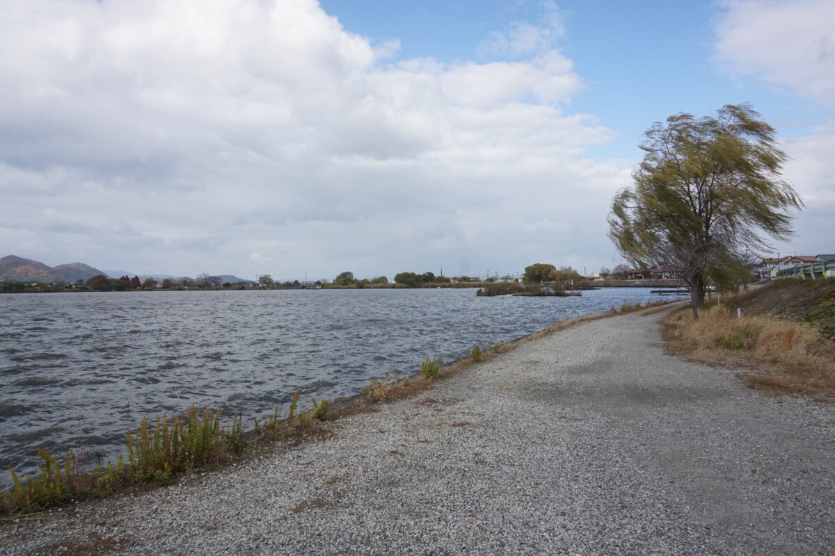 >>豊浜水辺公園一帯(地図)を目指します。安土駅から徒歩10分。安土城大手門跡まで徒歩25分。
