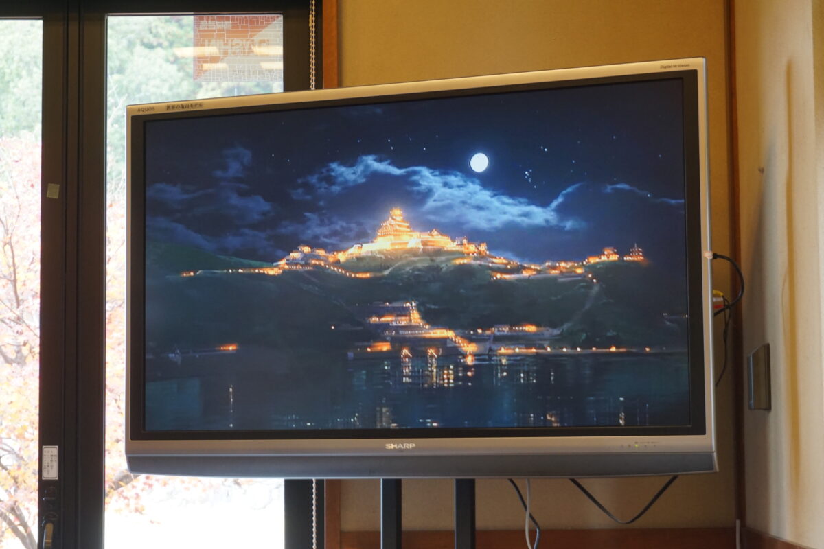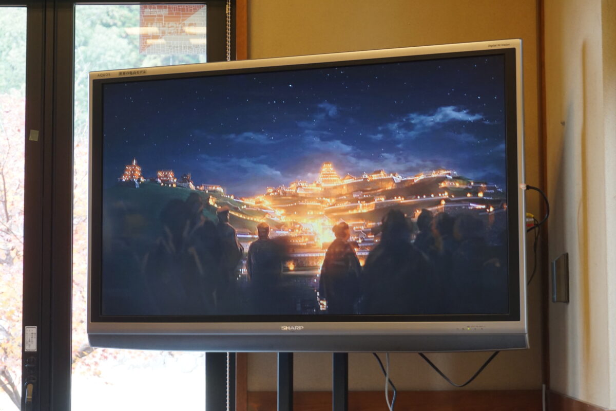 信長は提灯などを使い、日本初の大規模なライトアップを試みました。この映像は安土城跡大手門前の城なび館で見学できます。