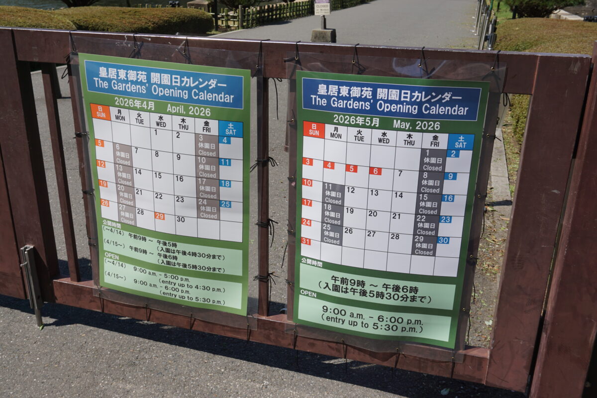 東御苑は、皇居の中の江戸城らしさが強い部分(厳密には本丸、二の丸)です。普段皇族が使用している訳ではありませんが、入場自由ではなく、特に月曜、金曜に休館していることに注意が必要です。
