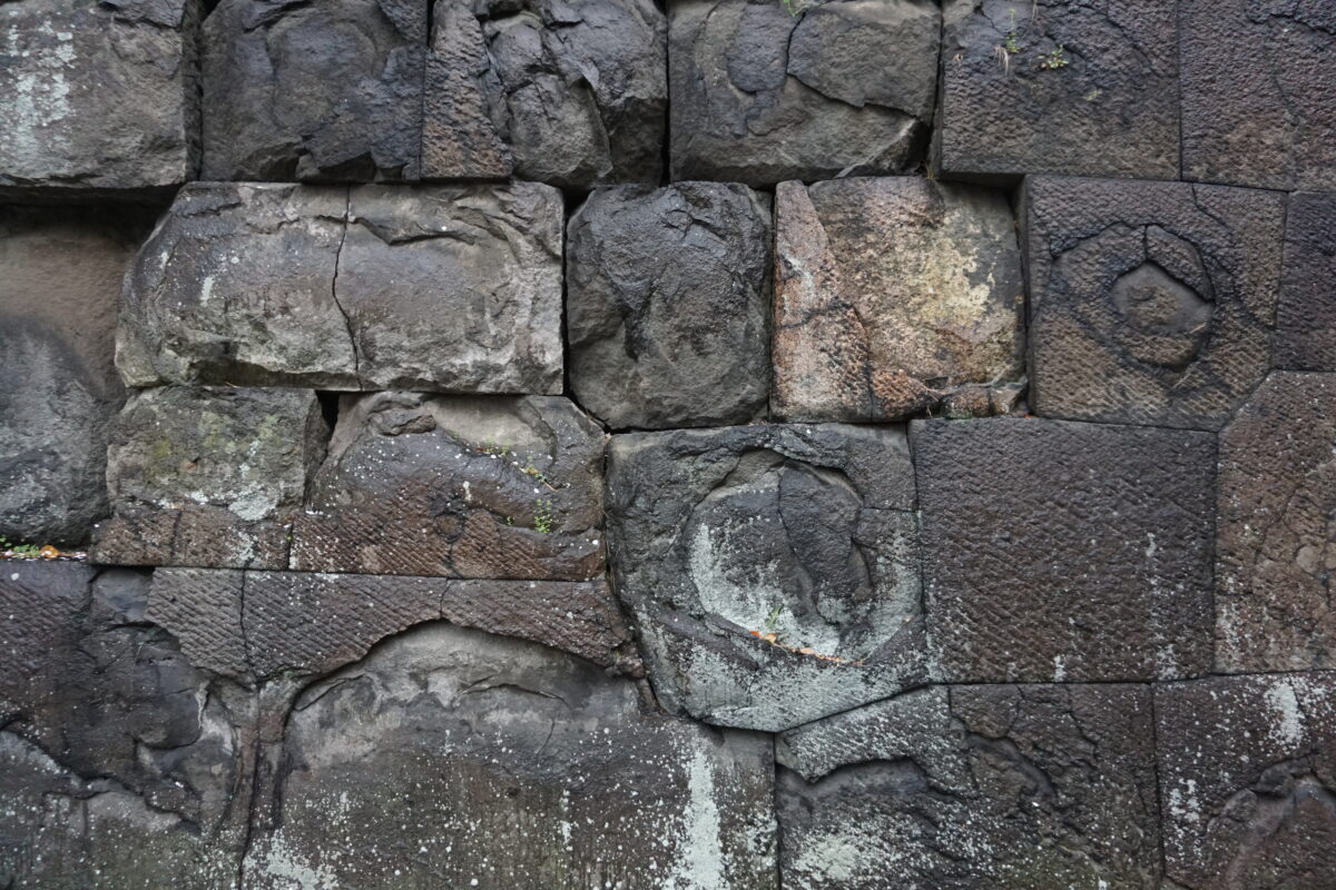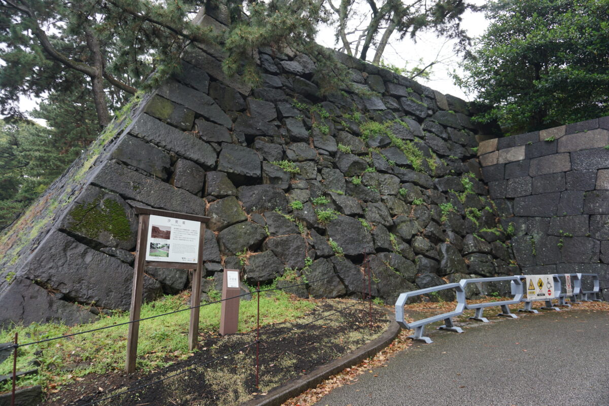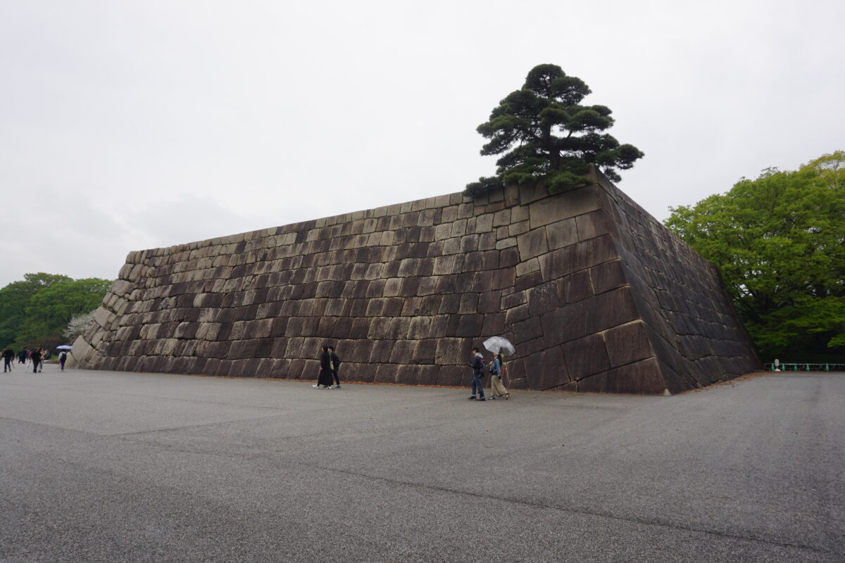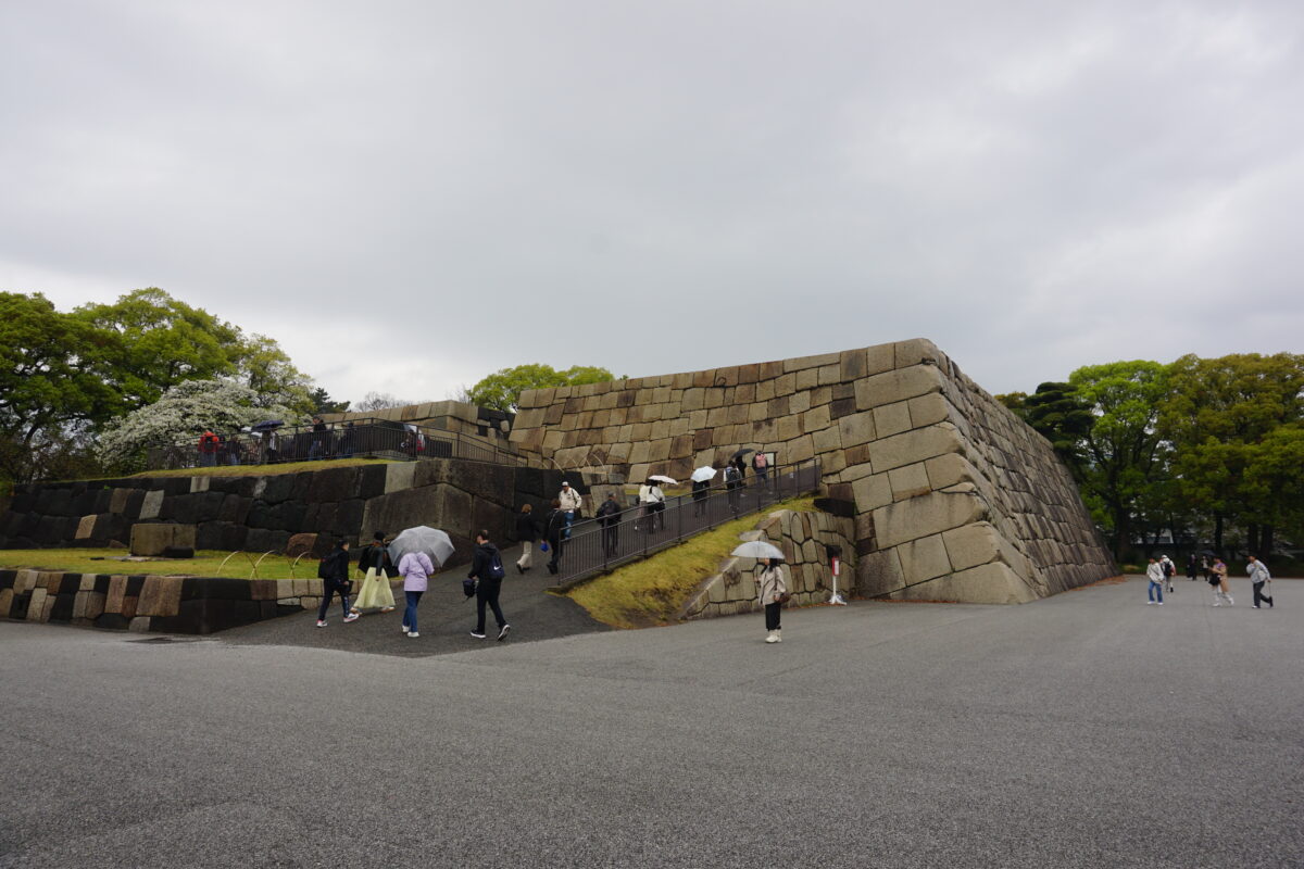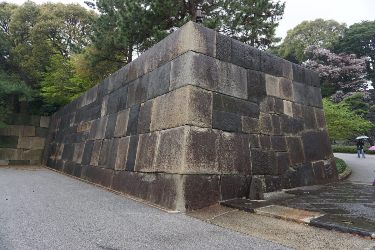 中の門の片側。黒の安山岩が多い江戸城ですが、白っぽい石は花崗岩。4代将軍徳川家綱は、西日本の花崗岩を運ばせ改築しました。