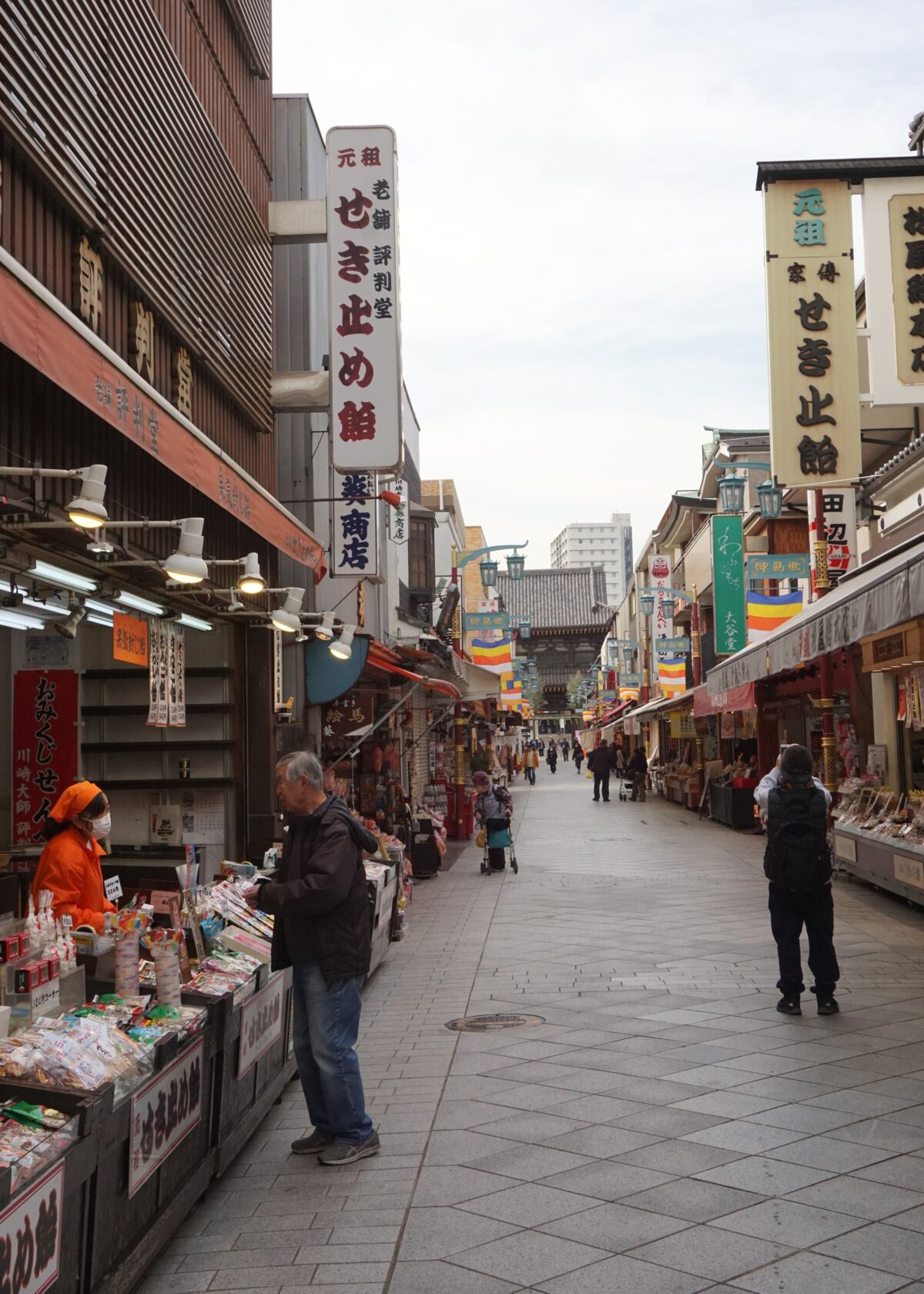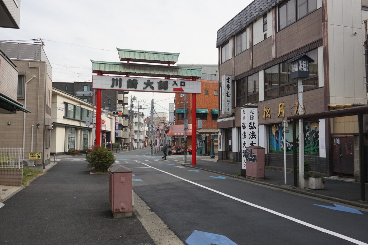川崎大師駅から東(海の方)へ向かいUターンし、飴切りの音が響く仲見世通りを経て大山門に向かいます😎 pic.twitter.com/jFL46Pctb4