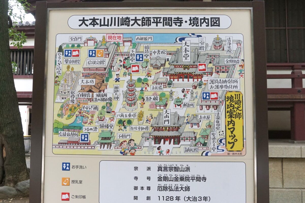 川崎大師は正式には大本山川崎大師平間寺(へいけんじ)。真言宗智山派の大本山で、平安時代末期の1128年に創建されました。