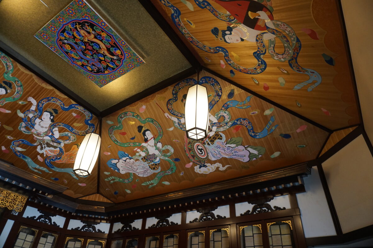 経蔵には、インドの釈迦如来像、中国の乾隆版大蔵経、韓国の天井画「双龍」、日本の仏画「飛天」が配置され、仏教がインドから中国、朝鮮半島を経て日本へ伝わった歴史を象徴しています。