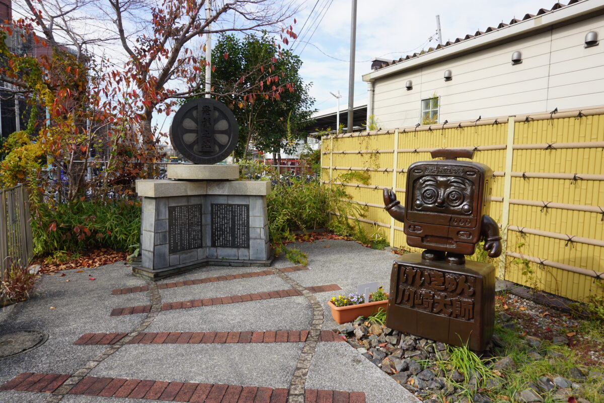 京急大師線は、京急の原点にあたる存在でもあり川崎大師駅前には記念碑が残ります。