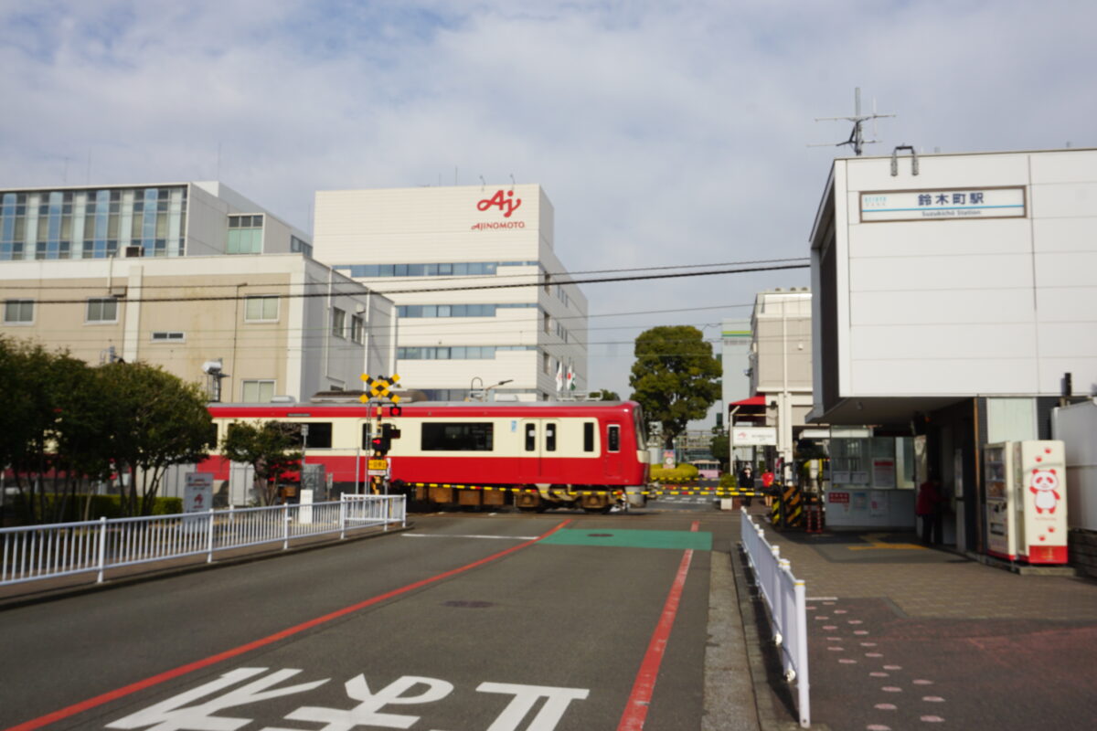 タモリさんは大師線に乗車。途中通り過ぎた鈴木町駅は、味の素の創業者の名前から取っています。