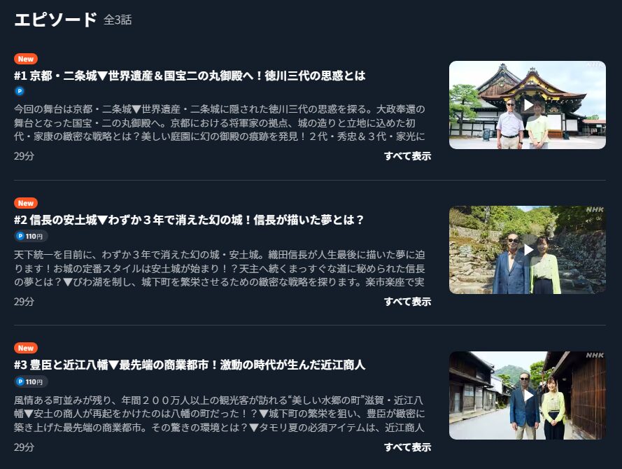 NHKオンデマンドやU-Nextでの視聴可能なのは、2週間前までのブラタモリのみとなっています(日曜日は3回分見られることもあります)。