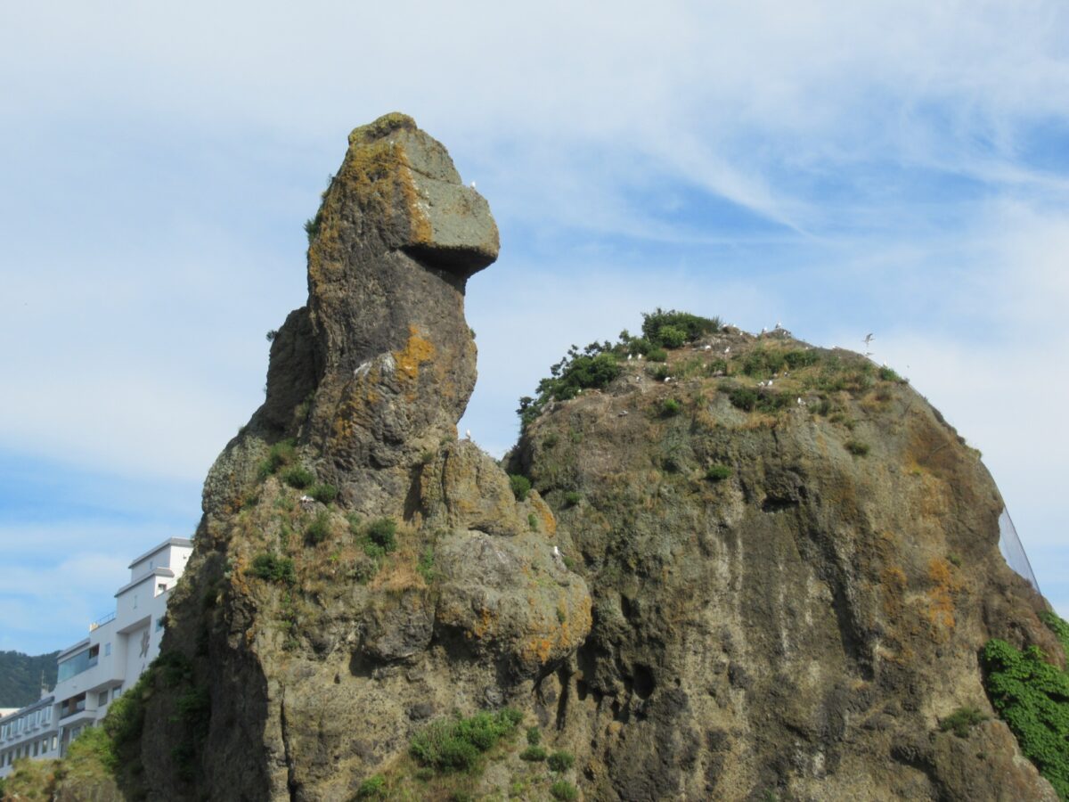 ブラタモリは、巨大な火山岩の前からスタート。ウトロの観光名所ともなっており、ゴジラ岩と呼ばれています。テーマは、世界遺産知床は、火山のおかげ、です。