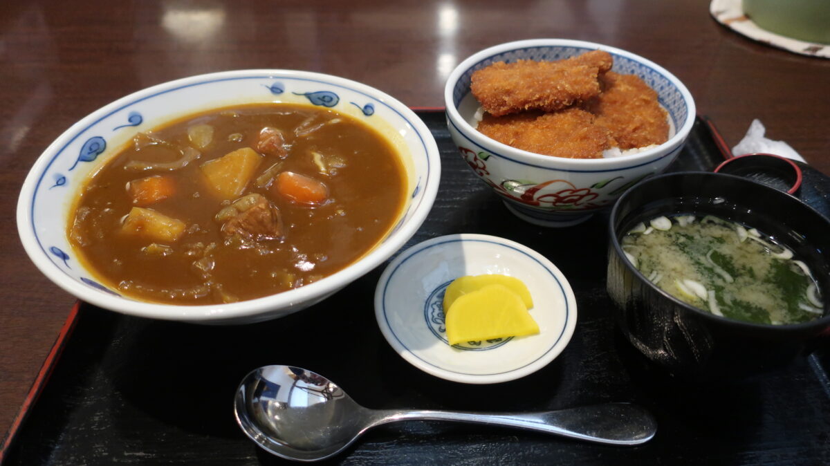 大衆食堂正広のミニカレーラーメンとミニたれカツ丼セット(980円)です。